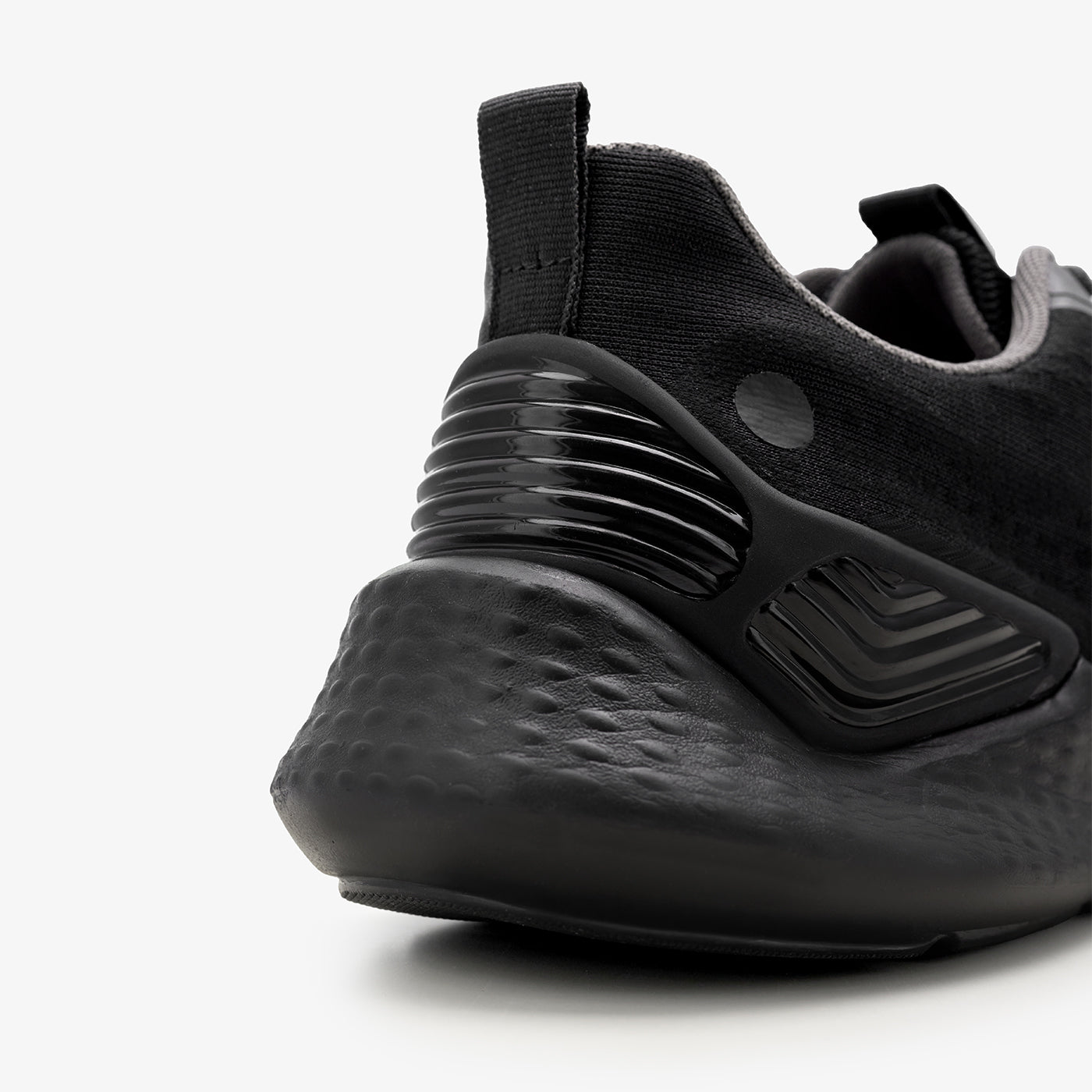 Lightweight all-black running sneakers with engineered knit upper. Breathable and versatile, made for comfort and everyday wear.